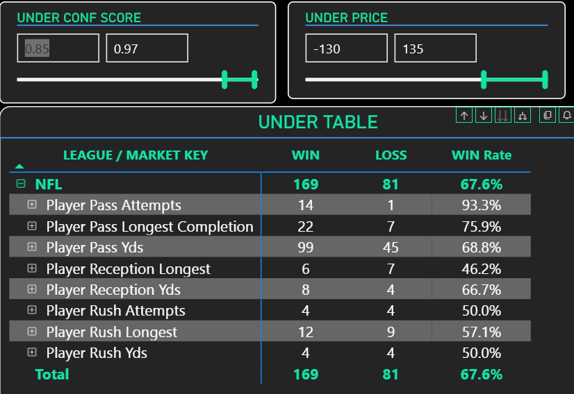 High Confidence Score Unders (.85+) are up 78u since the start of NFL!